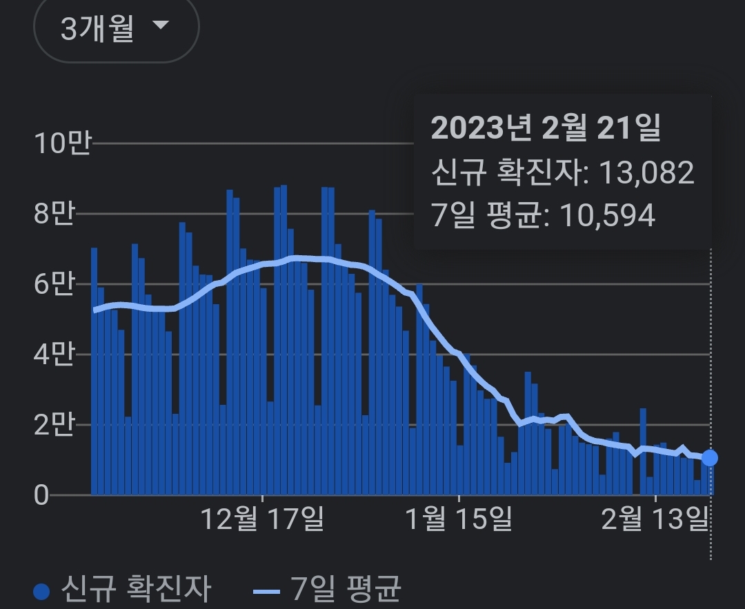 | 코로나19집계(2023.2.21. 0시기준) 확진 +1.2만, 사망 +8명, 중환자병상가동률 17% (0) | 2023.02.21 |