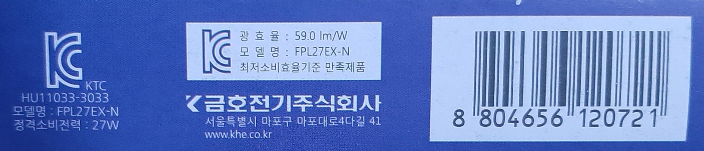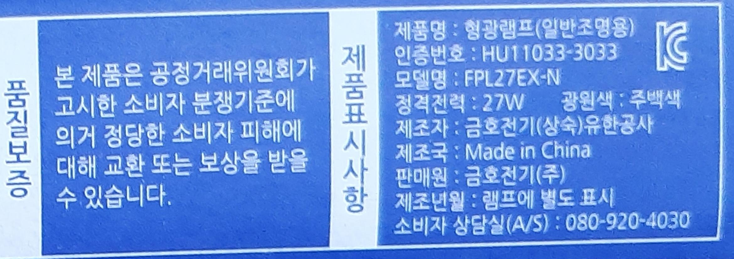 FPL27EX-N 주백색모델, 색온도는 5000K 입니다. 오스람 5700K 다음으로 제가 좋아하는 색온도. 이 다음으로 좋아하는 색온도는 4000K 입니다.2
