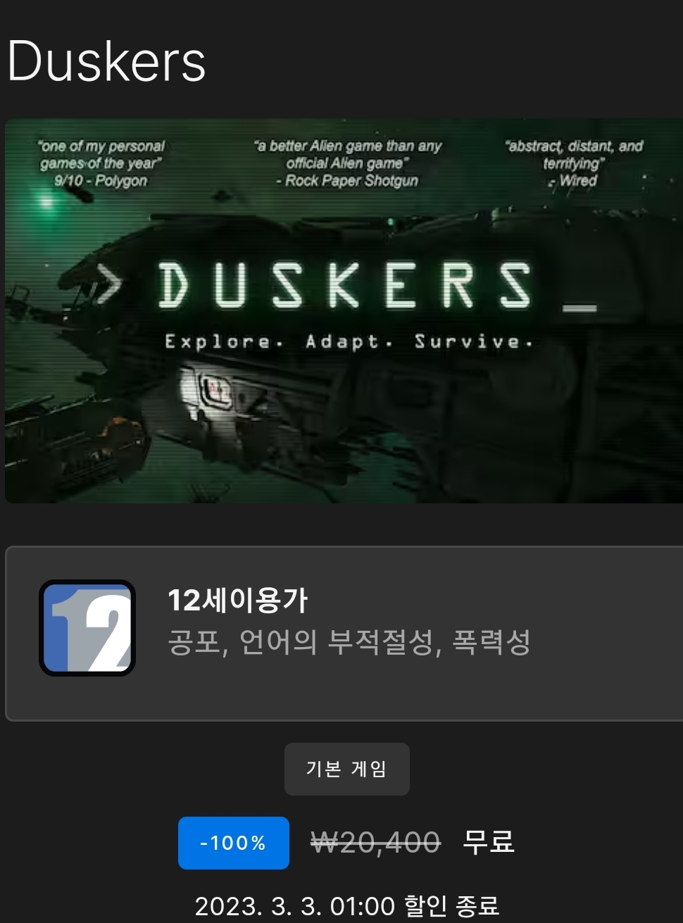 | (에픽게임즈 무료게임) Recipe For Disaster (0) | 2023.02.10 |