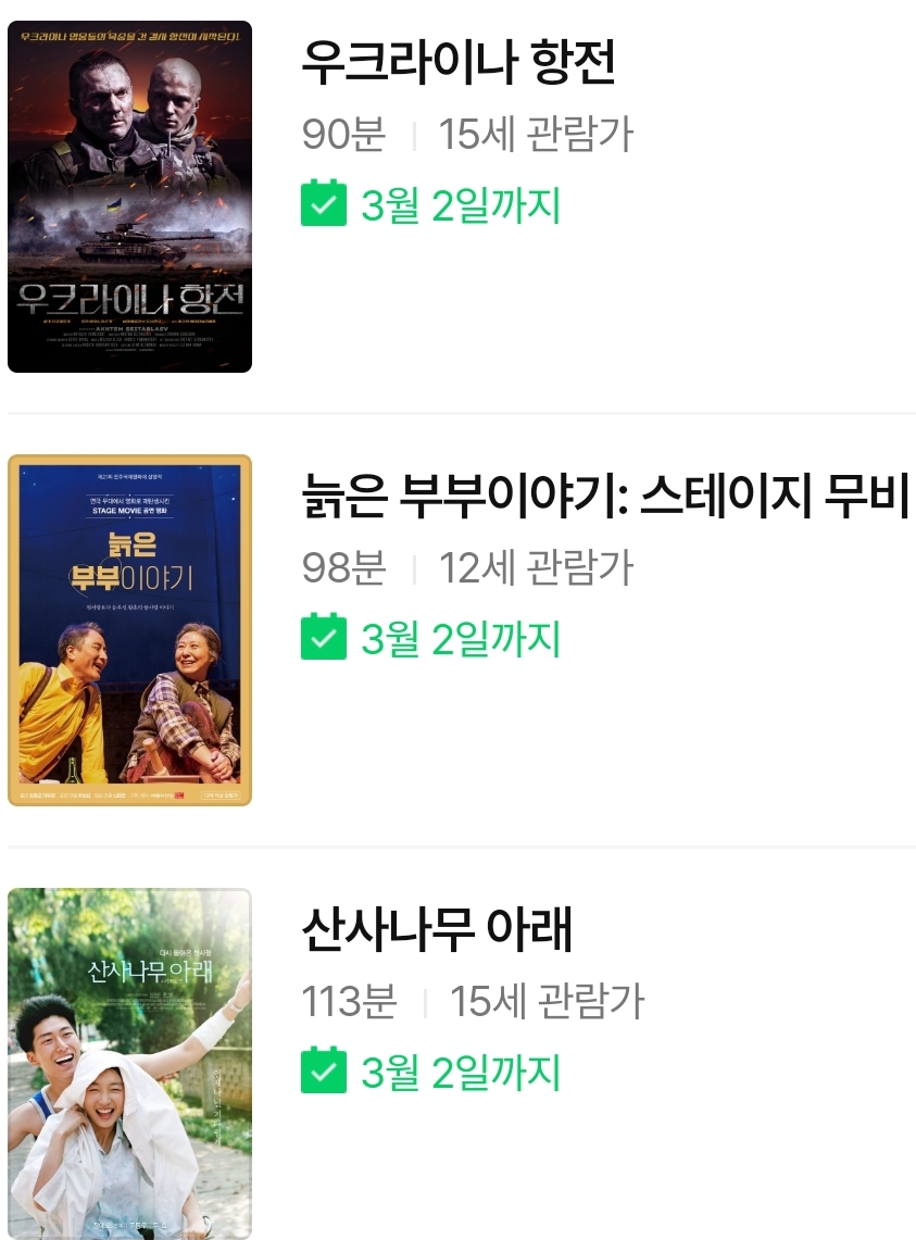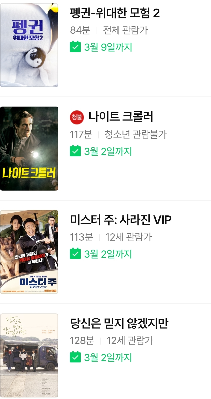 ~3.2까지.. 나이트 크롤러, 미스터 주:사라진 VIP, 당신은 믿지 않겠지만, 우크라이나 항전, 늙은 부부 이야기:스테이지 무비, 산사나무 이야기