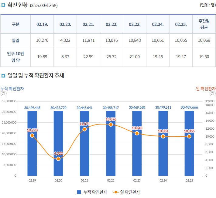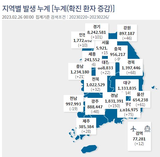 코로나19집계(2023.2.26. 0시기준) 확진자 +9천, 중환자병상가동률 15% 본문