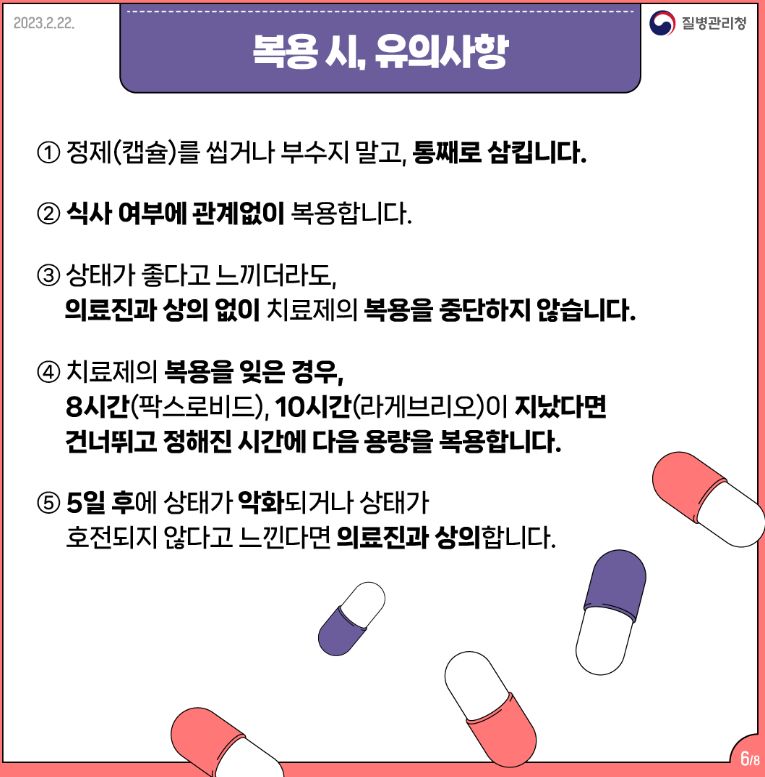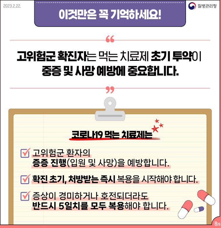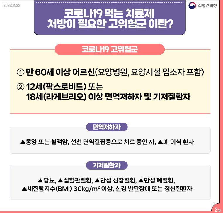 코로나19(2023.2.22) 고위험군 대상, 먹는 코로나19 치료제 안내(카드뉴스) 본문