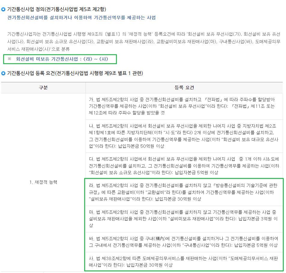 "설비 미보유 기간통신사업자"가 인터넷서비스를 한다면 그건 무슨 뜻이지?? 좀 찾아본 것.