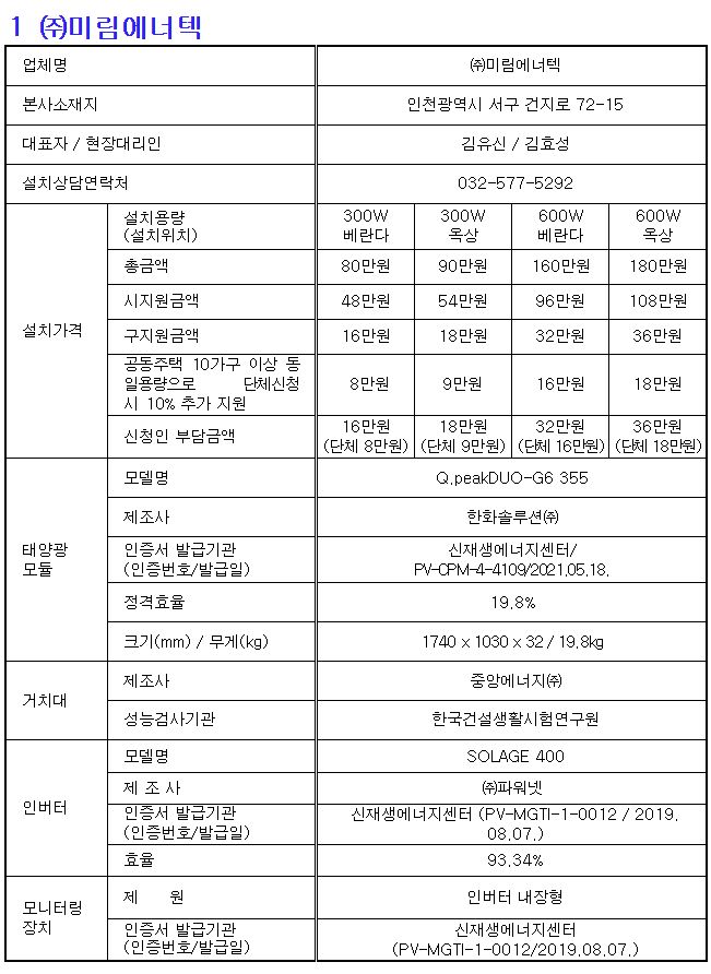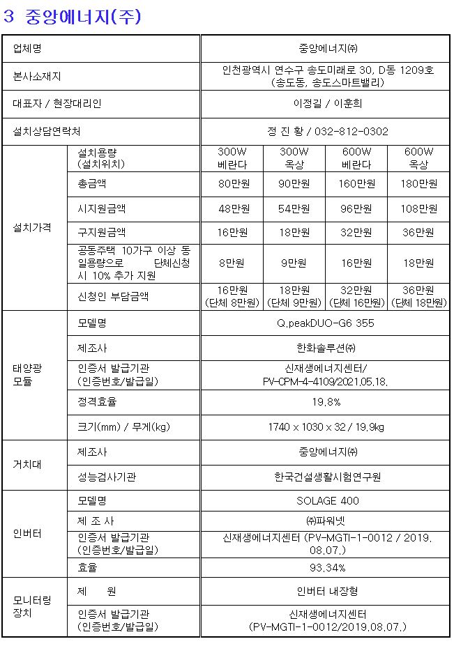인천시는 올해도 하는 듯. 좋네요. 인구가 아주 많고 인구밀도가 높아 사업도 편한 서울시의 경우 자치구에서 사업공고를 하면 설치하고자 하는 세대가 연락할 수 있는 업체가 15곳 내외나 된 적 있었지만, 인구가 적은 지방 광역시는 보통 3곳 근처인 듯.