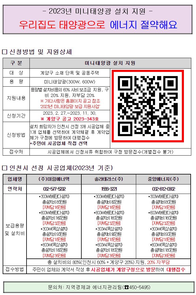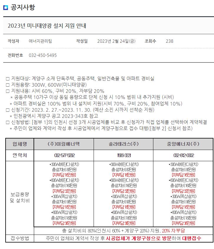 인천광역시, 2023년 미니태양광 지원사업 2월부터 접수시작. 몇 가지 여담 본문