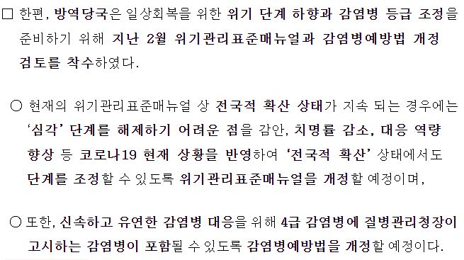 1. 코로나19 위기단계하향과 감염병 등급조정문제