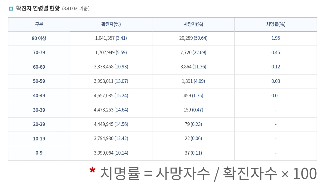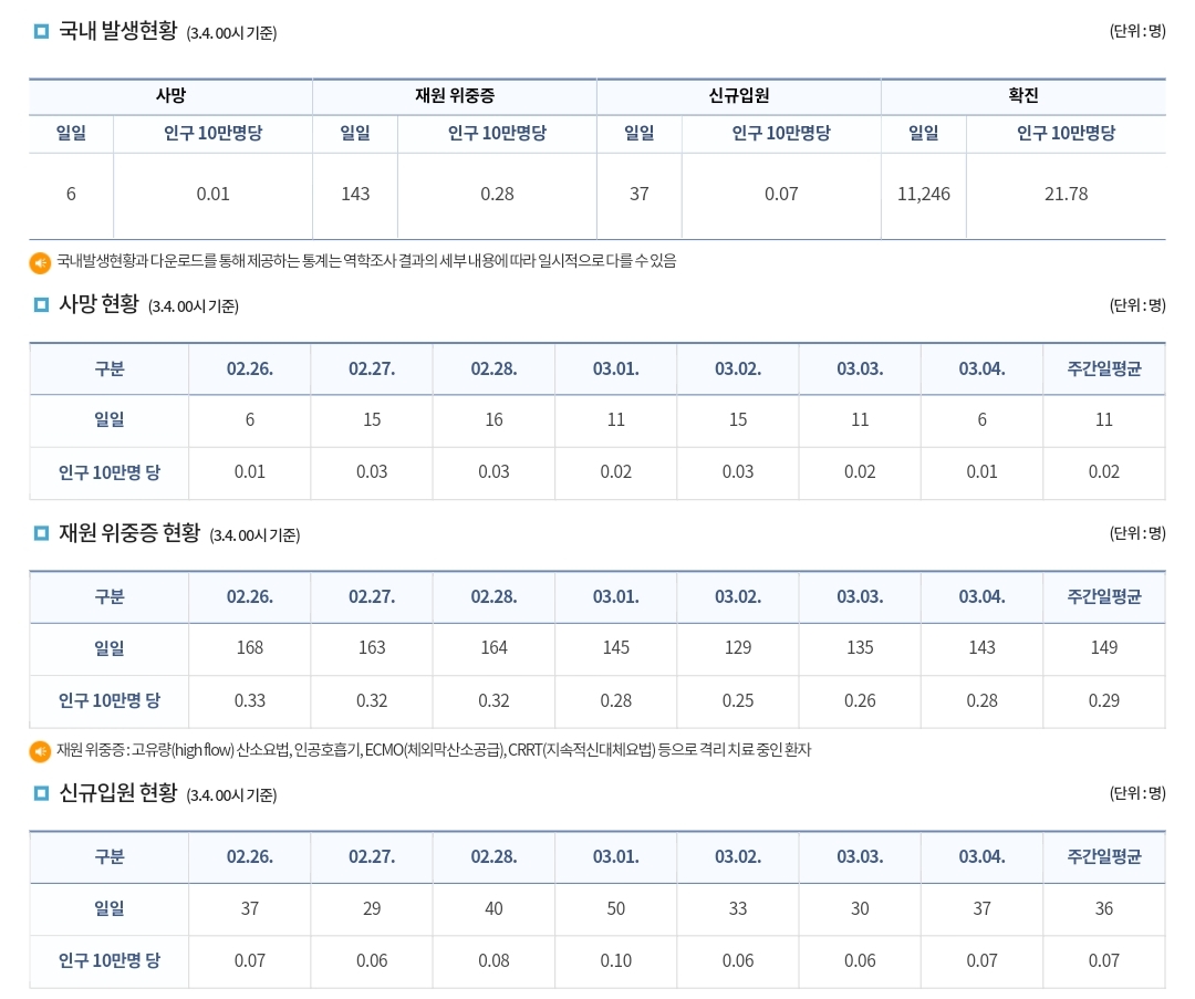 | 코로나19집계(2023.3.3. 0시기준) 확진 +1만, 사망 +11명, 중환자병상가동률 13% (0) | 2023.03.04 |