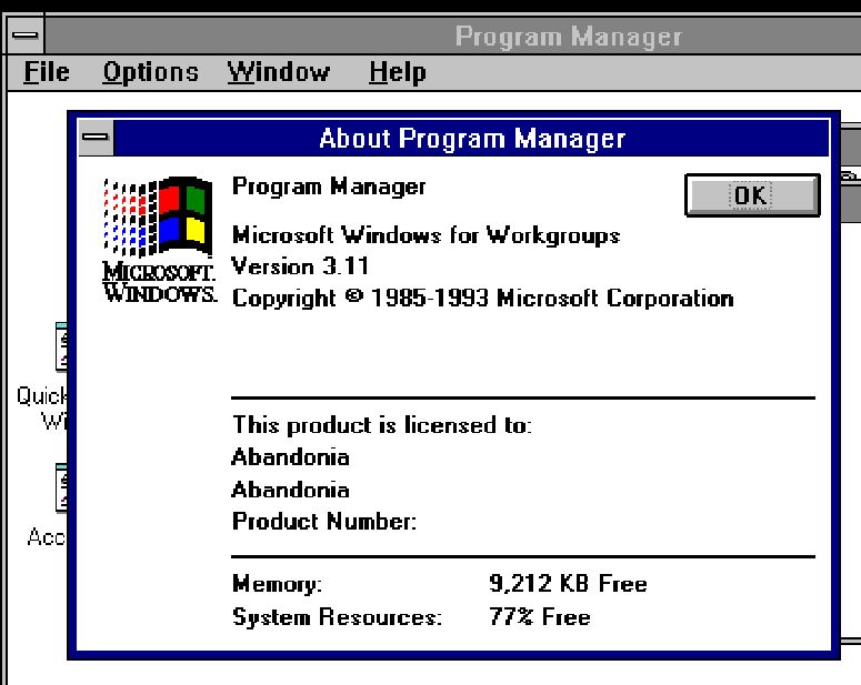 그런데, 윈도우 3.x용이라는 문명2는 뭔가를 몇백 MB로드하면서, 도스박스 로고가 지나간 다음 윈도우 3을 띄우네요. 프로그램 매니저가 딱 뜨는데 정보를 보니 윈도우 3.11이라고.1 마이크로소프트가 '대인배'인 건지 눈감아준 것인지 참.. 여기에 윈도우 3.x용이었을 아래아한글과 MS오피스를 띄우면 어떨까하는 생각이 문득 들었습니다. ㅋㅋ
