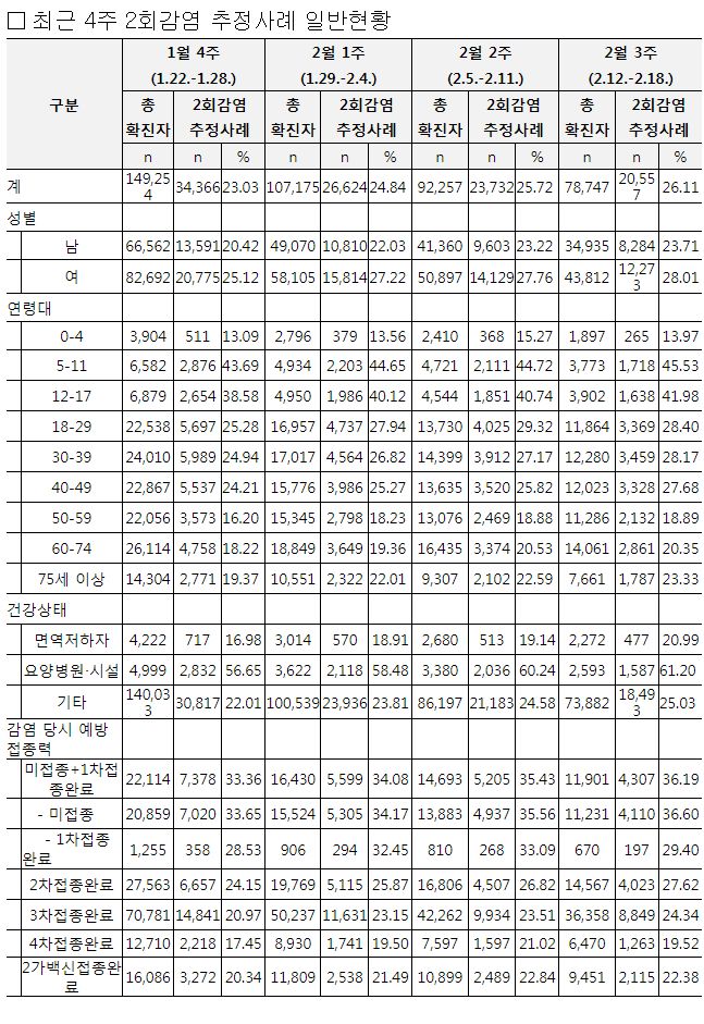 * 재감염 추정사례 발생 현황(2. 19. 0시 기준)