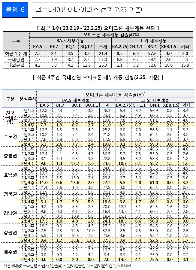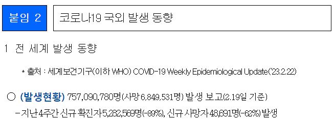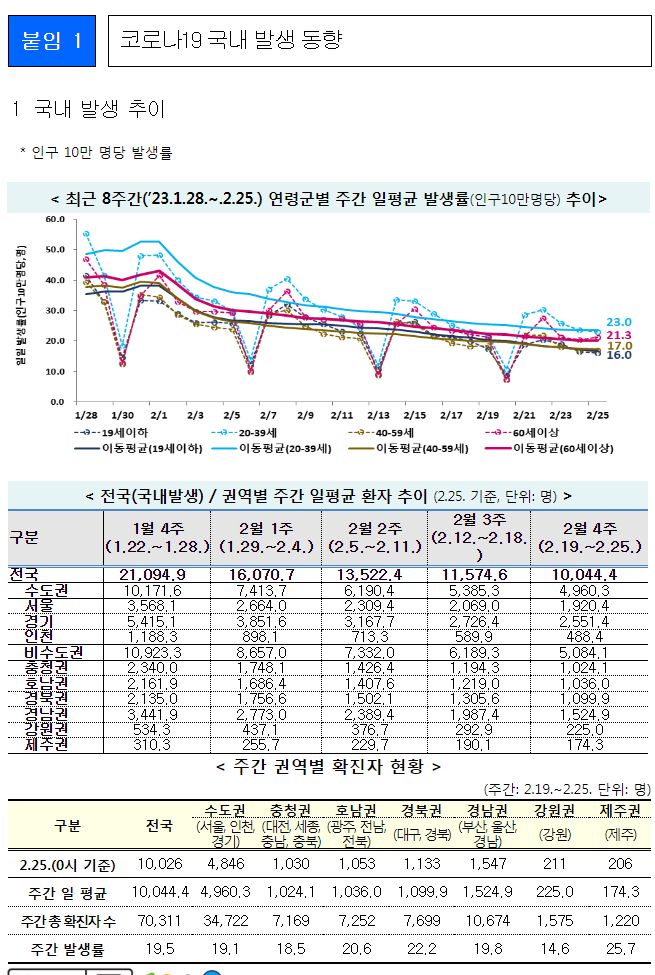 코로나19(2023.2.28) 주간 발생 동향 및 위험도 평가(2.19.~2.25.) 본문