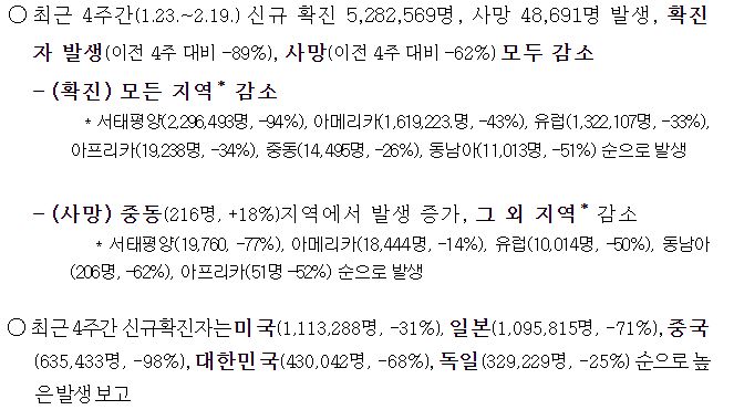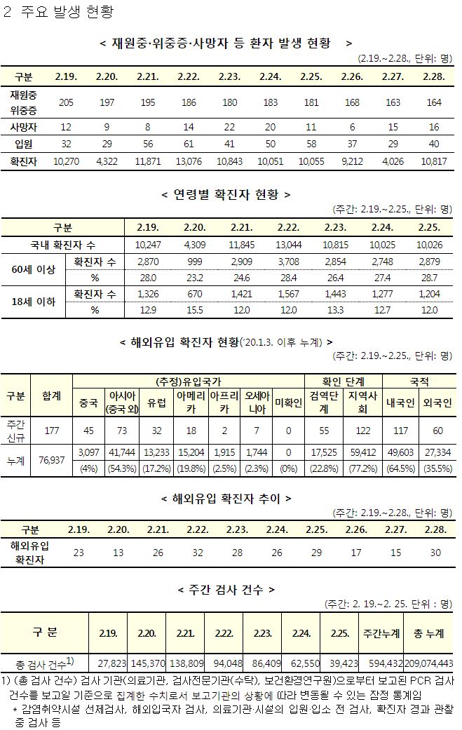 코로나19 주간 발생 동향(2.19.∼2.25.)