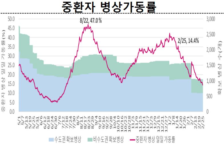 코로나19 병상 및 재택치료 등 현황, 병상가동률
