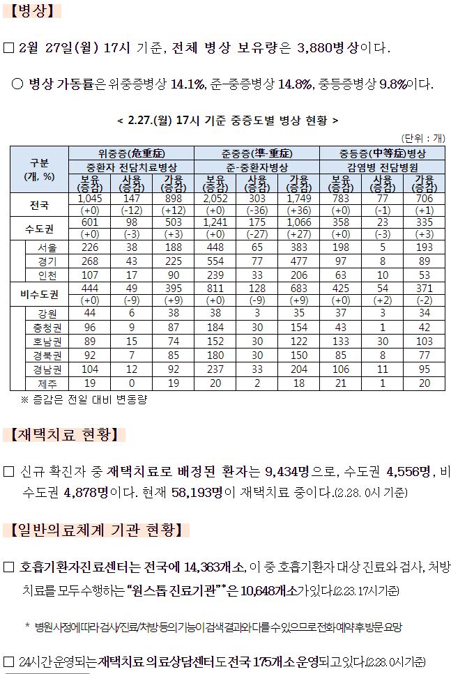 | 코로나19집계(2023.3.6. 0시기준) 확진 +4천, 사망 +9명, 중환자병상가동률 13% (0) | 2023.03.06 |