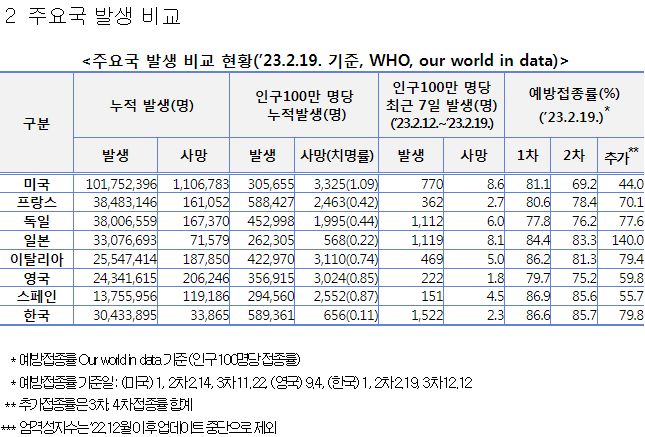 출처는 질병관리청 2023.2.28. 보도자료. 아래 내용은 그 중 일부 발췌입니다. 자세한 내용은 링크한 웹페이지의 첨부파일을 보세요.