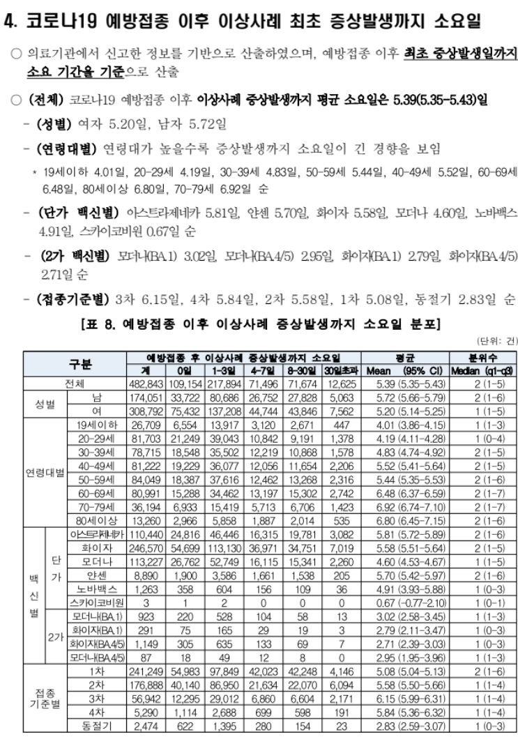 4. 코로나19 예방접종 후 이상사례 증상발생까지 소요일