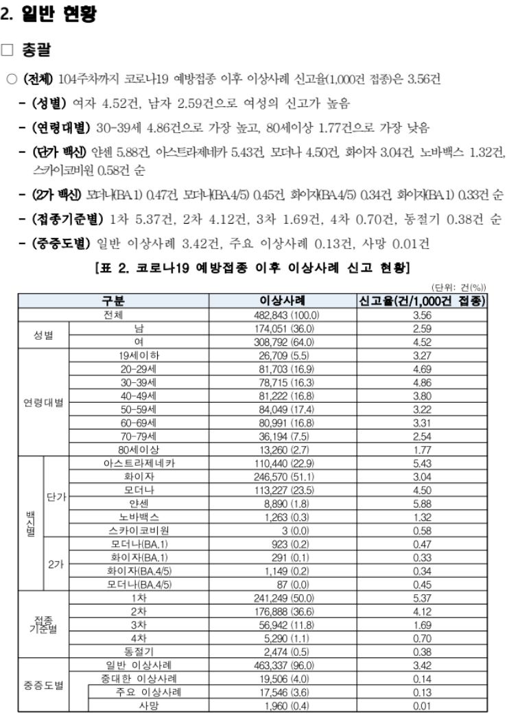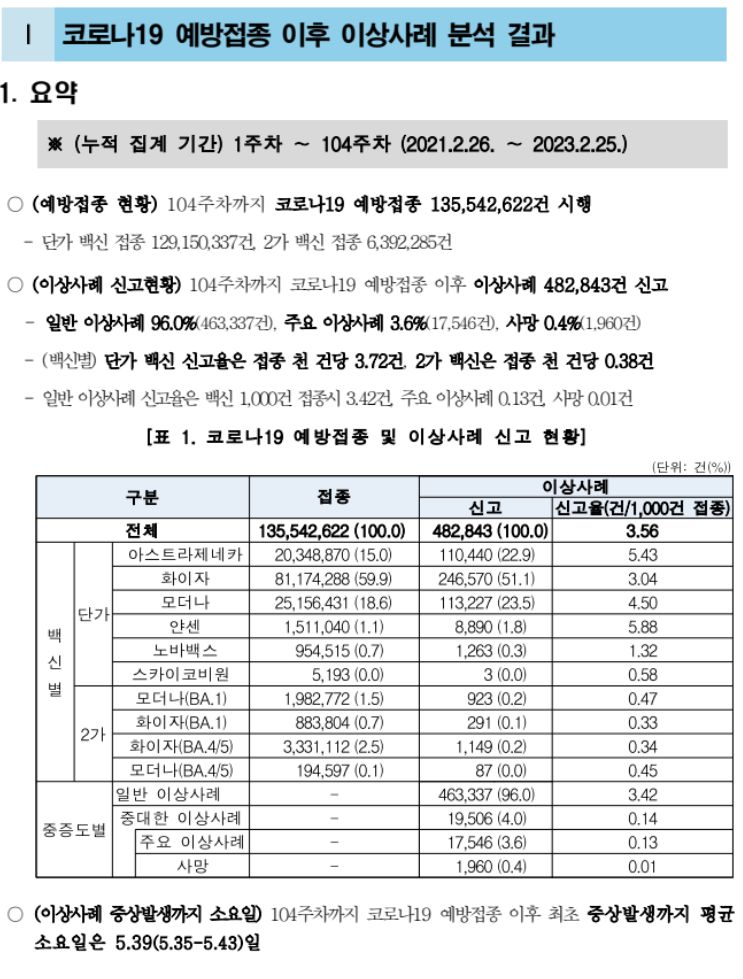 코로나19 예방접종 안전성 보고서(104주차)