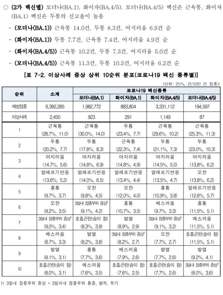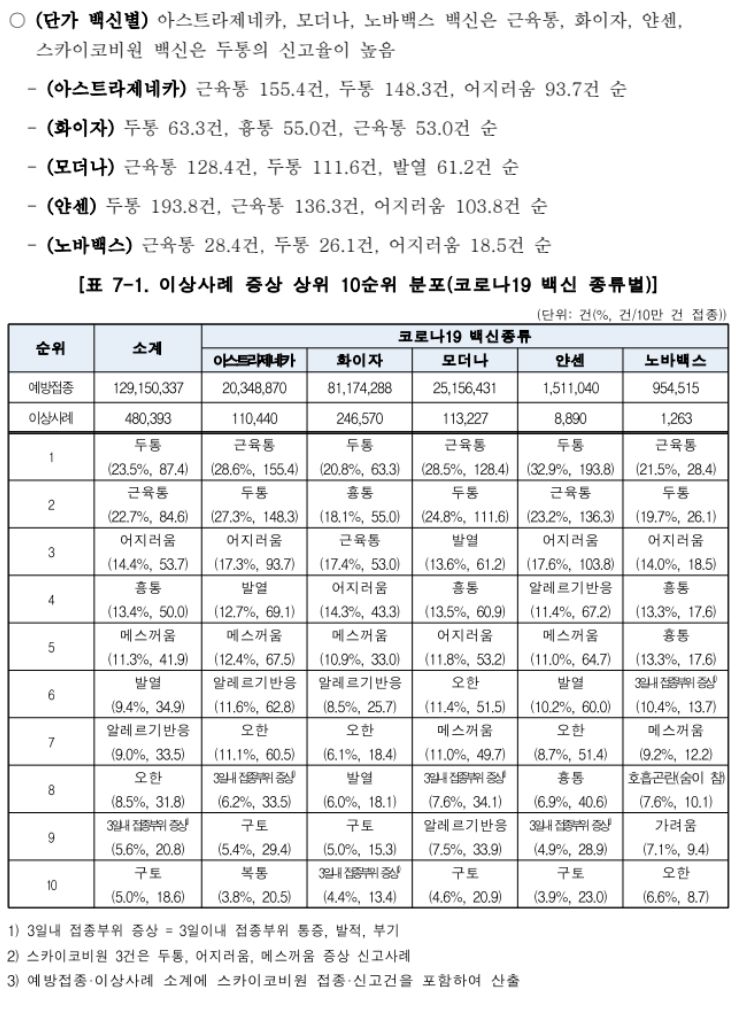 Ⅰ. 코로나19 예방접종 이후 이상사례 분석 결과