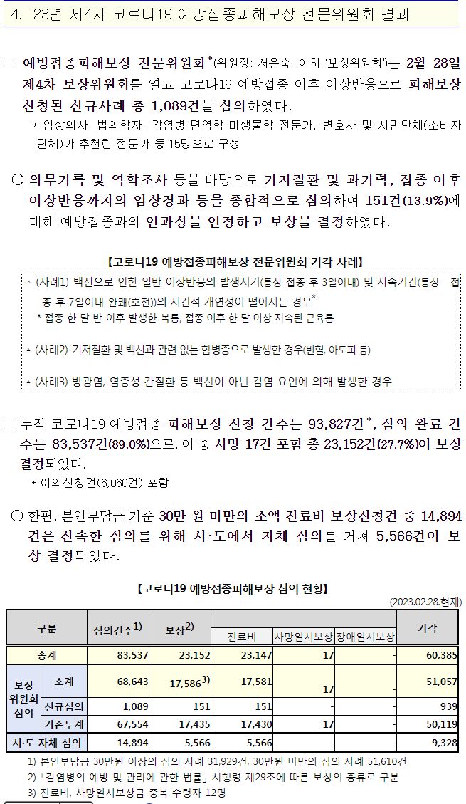 '23년 제4차 코로나19 예방접종피해보상 전문위원회 결과