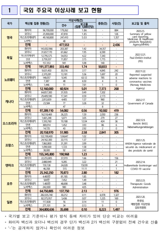 Ⅳ. 국외 코로나19 예방접종 이후 이상사례 보고현황