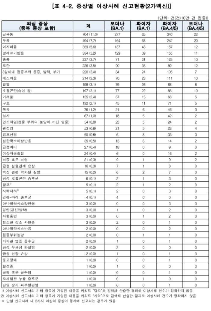 □ 2가 백신 접종 이후 이상사례 보고 현황