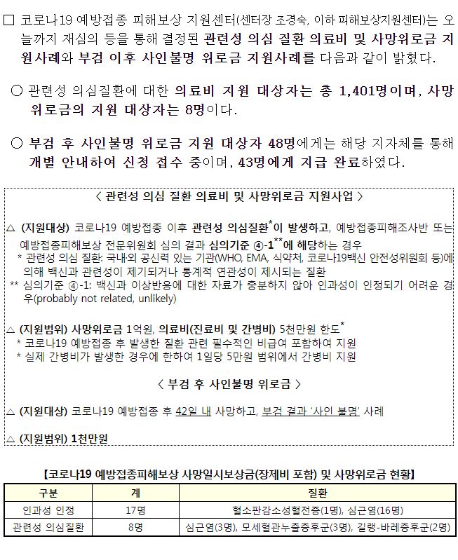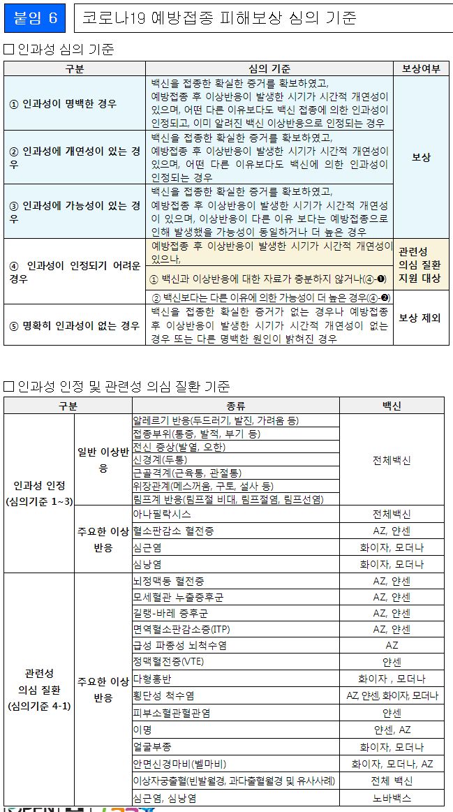 코로나19 예방접종 피해보상 심의 기준