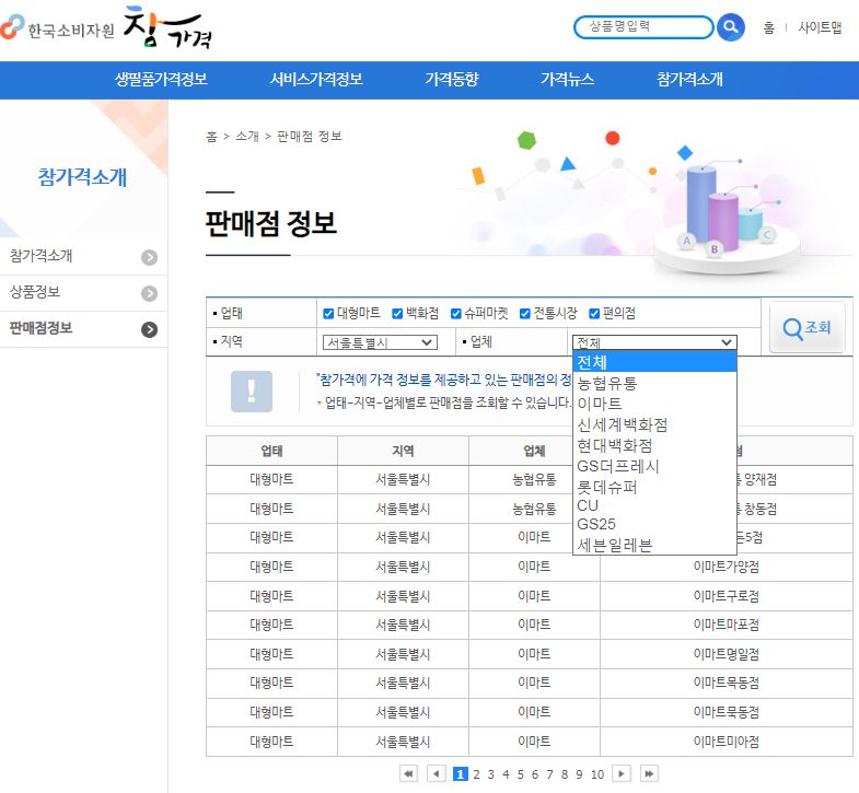 가격정보조사의 기준은, 대형마트, SSM, 백화점, 편의점, 농협하나로마트인 것 같습니다.1
