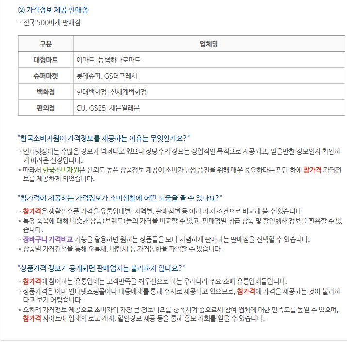 기사에 나오는 한국소비자원 가격정보 종합포털 참가격 서비스는 2015년에 시작한 것입니다.