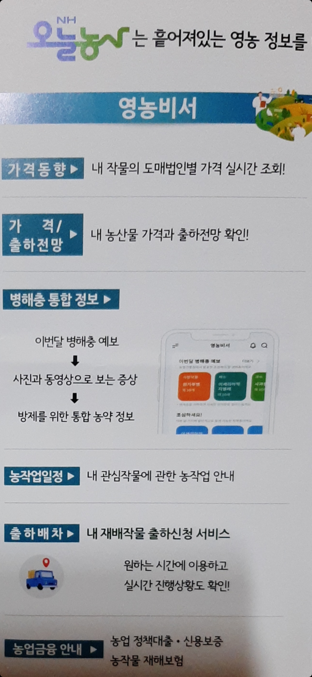 2.영농비서 : 관심작물 가격동향, 거래동향, 가격전망, 병충해 방제, 농작업 일정, 영농정보