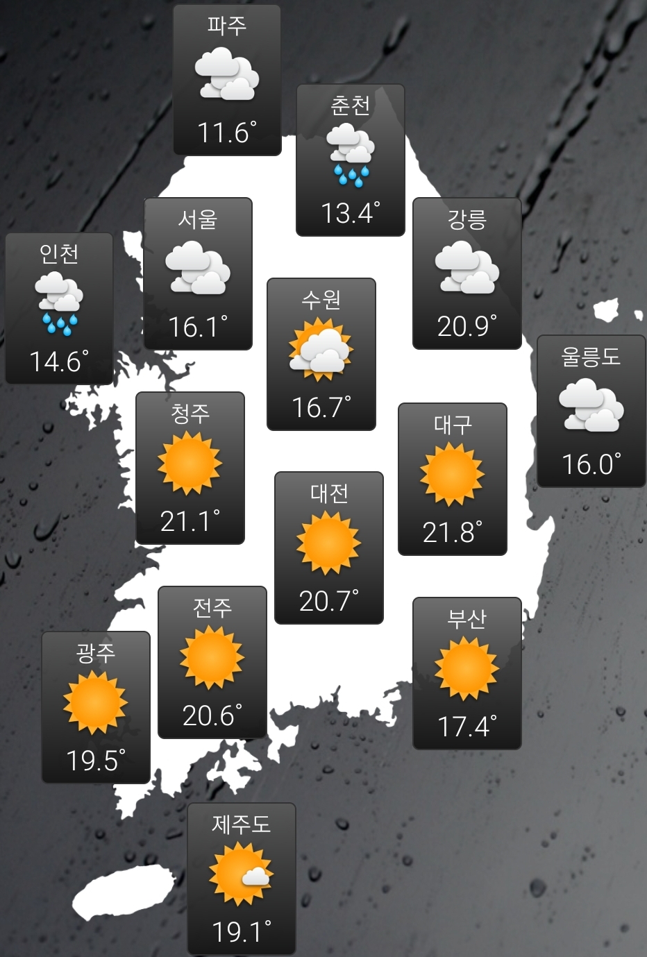 흐린 중부지방을 제외한 전국 기온이 20도 내외 본문