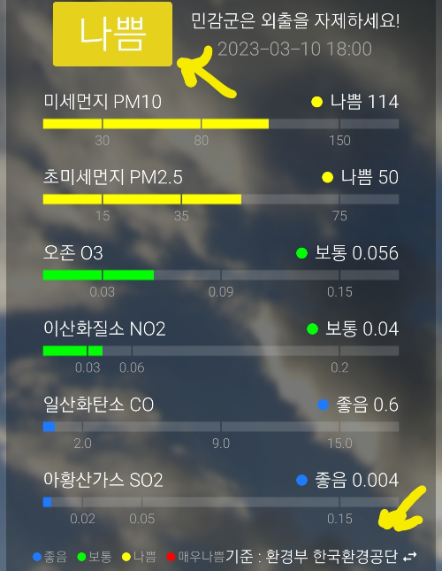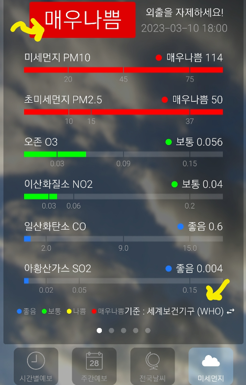 앱별로 표시하는 기준이 다를 수 있다고 합니다. 그래서 나쁨/좋음을 보여주는 화면에서, 어느 기준을 적용했는지 확인할 필요가 있다고.
