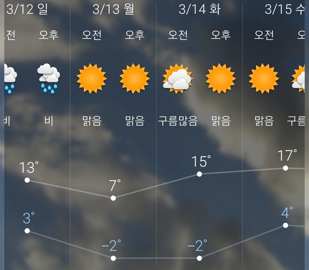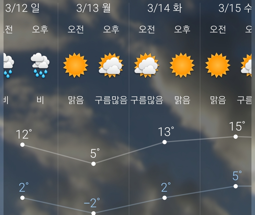 일교차가 크지만 활동하기 좋은 초봄날씨인 것은 공통. 꽃샘추위는 아직.