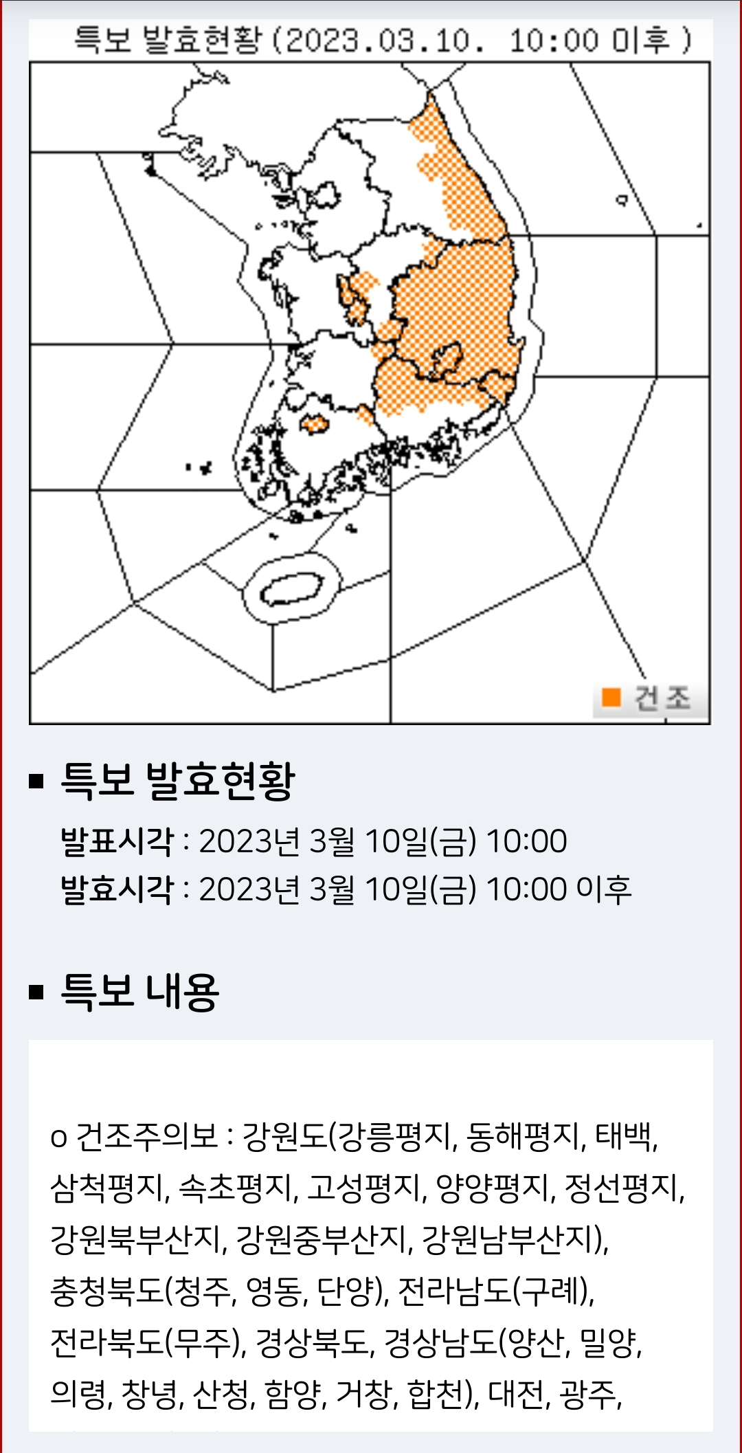 서울대전날씨(2023.3.11~21): 일요일 10mm정도 비. 이후 10일간 괜찮은 날씨. 현재 영동, 영남, 대전광주 건조주의보 본문