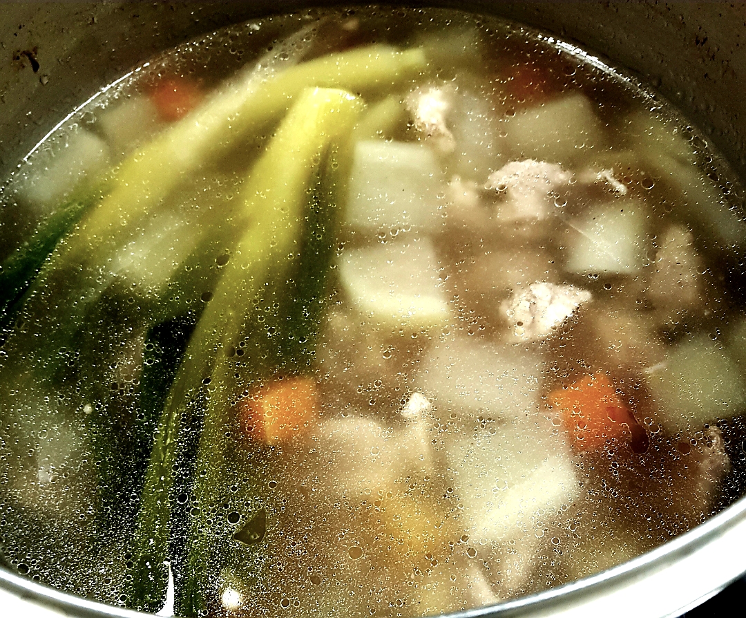 ㅡ 찌꺼기와 찌꺼기섞인 거품이 둥둥 떠다닐 텐데 그걸 국자로 걷어내 버린다. 그럼 맑은 국물이 남는다.