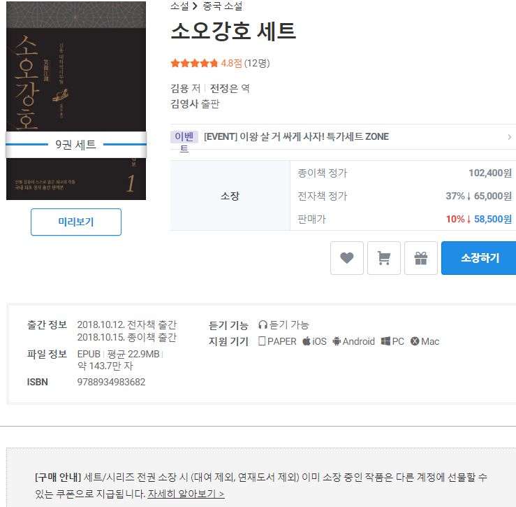 그 중 추천작은 소오강호. 만화 전자책으로도 나와 있네요. 이 글 맨 위의 리디북스 링크에 있습니다.