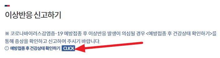 * 코로나19(COVID-19) 백신접종 후 이상반응이 있을 때 신고하는 링크.