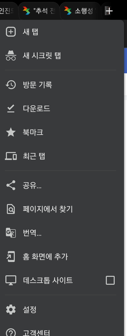 모바일 크롬 브라우저 개선희망점: 메뉴에 "현재 탭 닫기", "탭 그룹을 만들며 새 탭 열기"추가/:/ 동기화 버그 본문