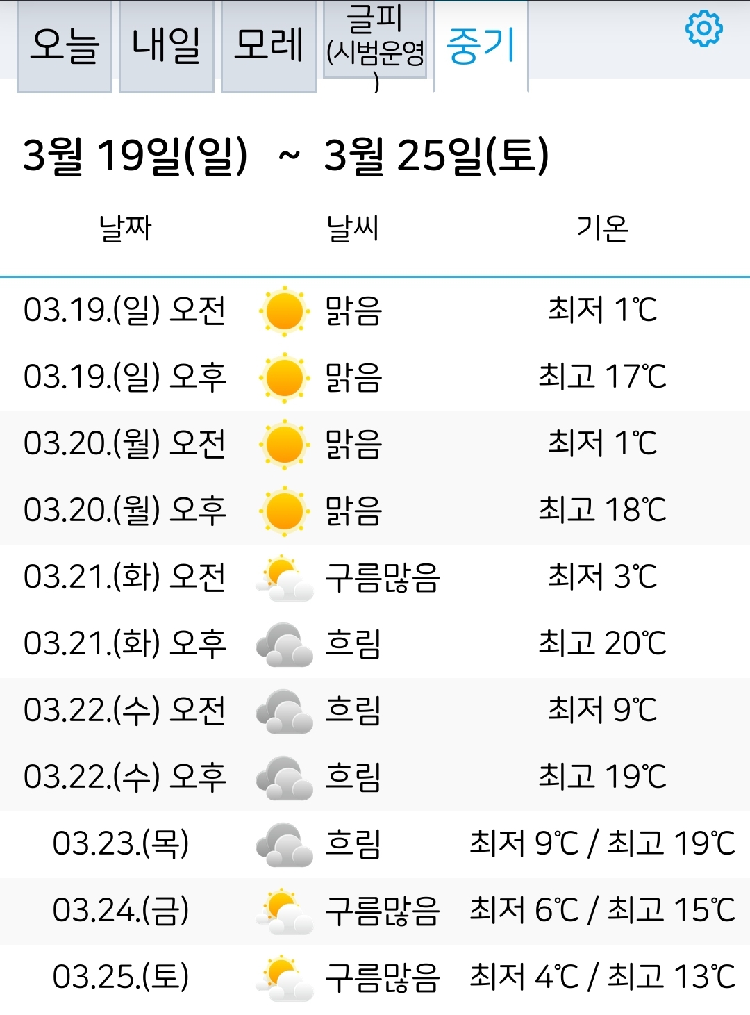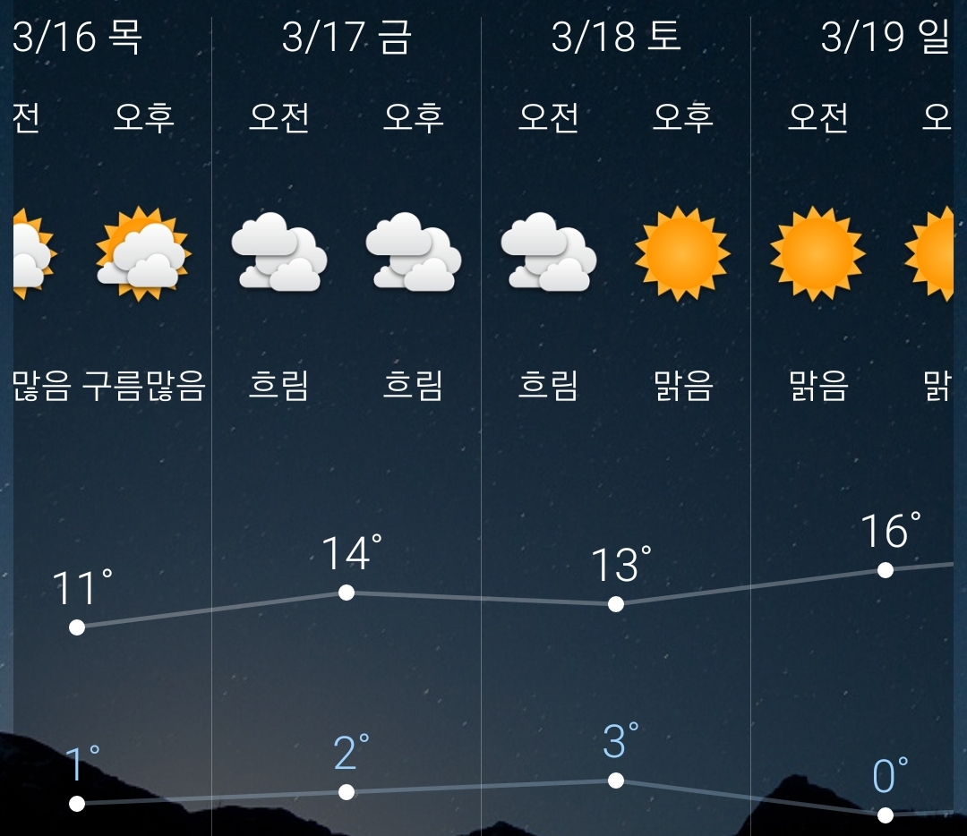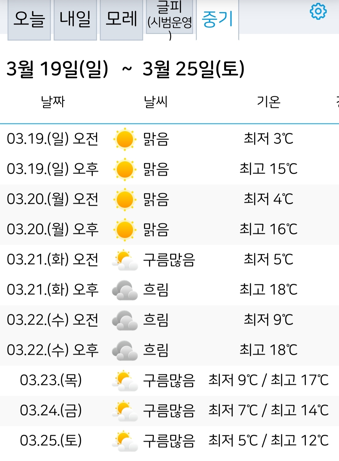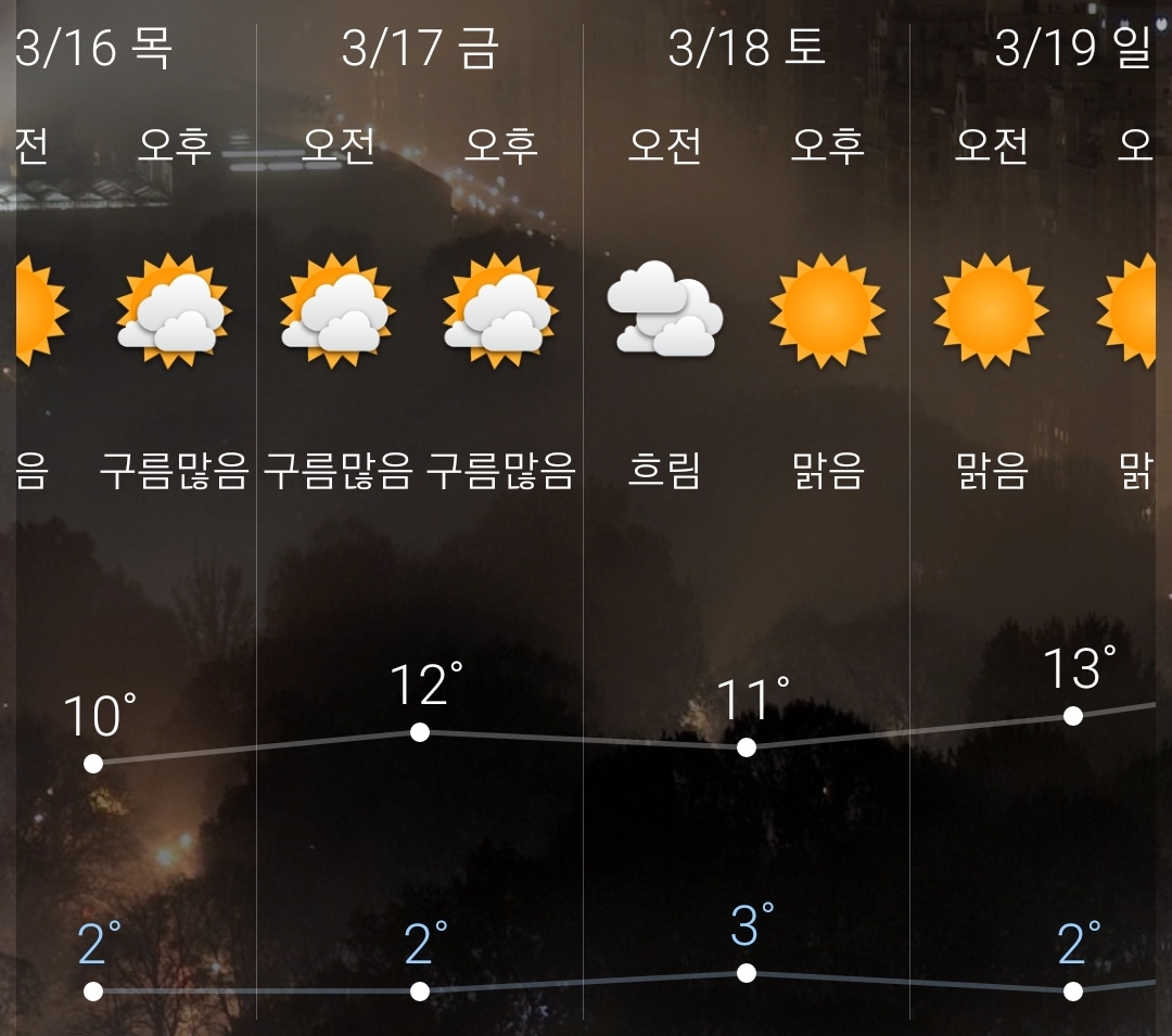 3.16(목)~ 3.25(토) 서울대전 일기예보 본문