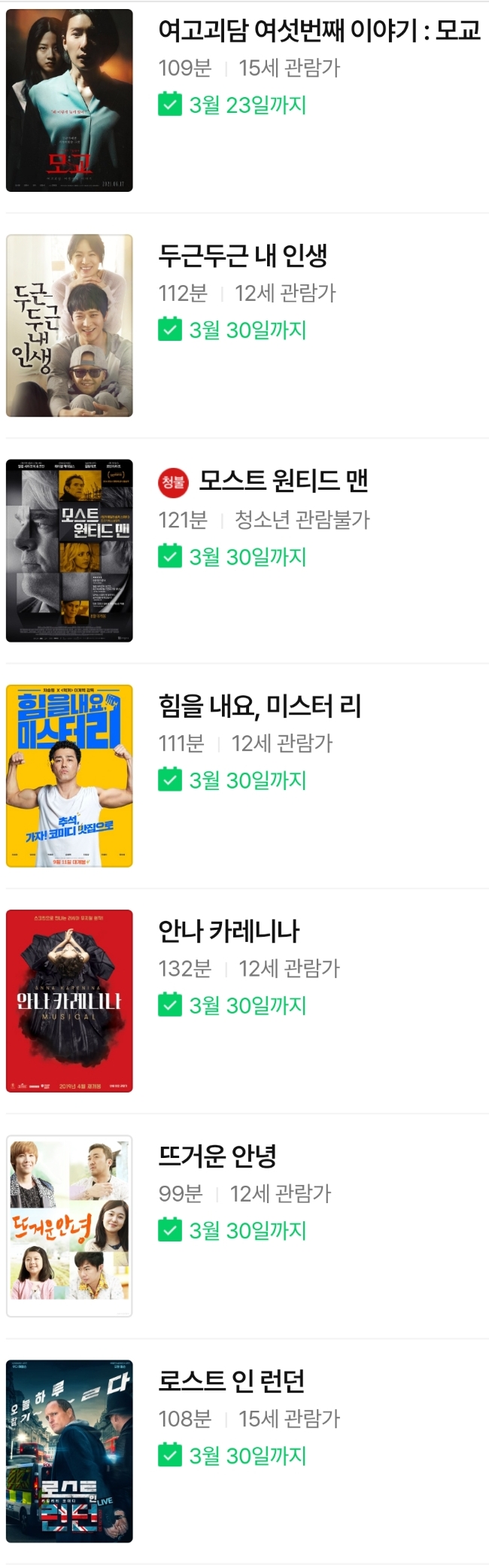 ~3.30.까지.. 두근두근 내 인생, 모스트 원티드 맨, 힘을 내요 미스터 리, 안나 카레니나, 뜨거운 안녕, 로스트 인 런던.