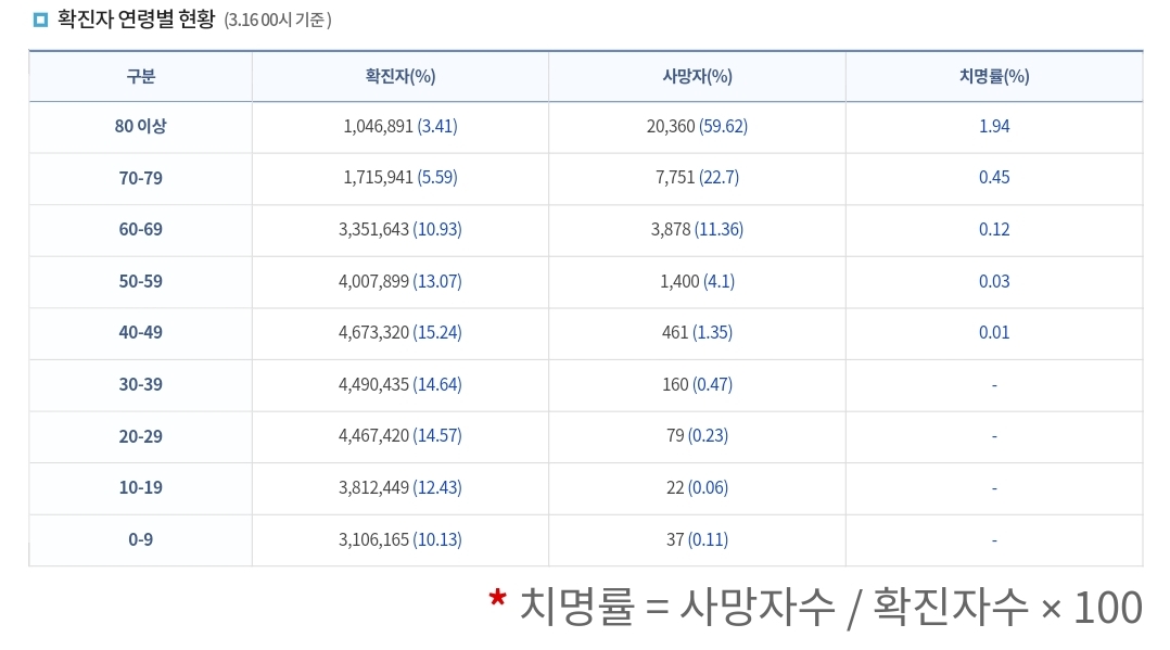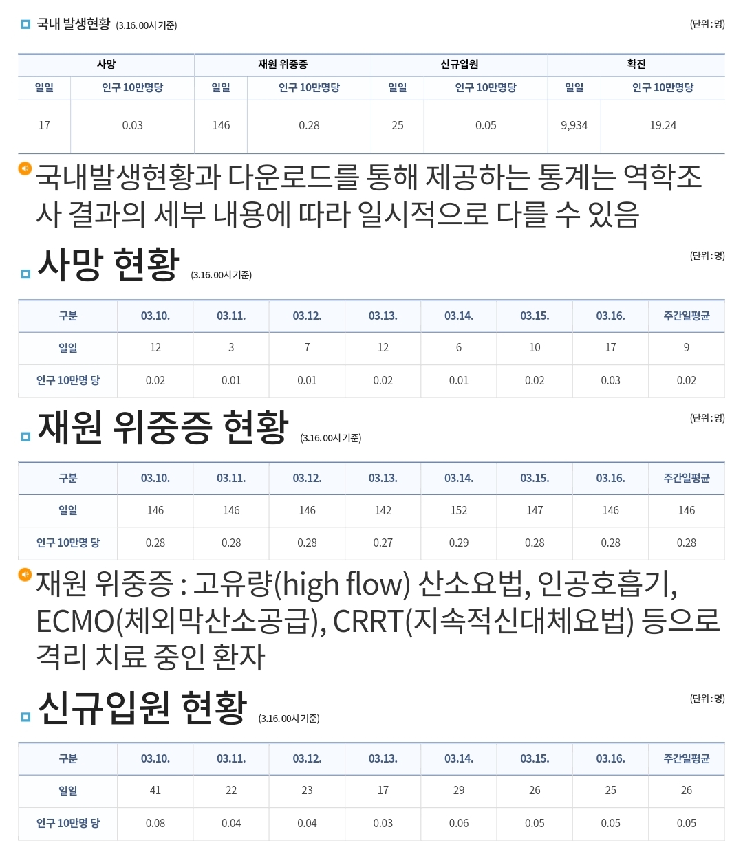코로나19집계(2023.3.16. 0시기준) 확진 +1.0만, 사망 +17명, 중환자병상가동률 27% 본문