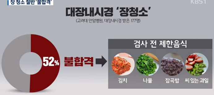 2018년쯤 고려대학교병원에서 조사해봤는데, 대장내시경받으러 온 환자들 중 약 절반은 의사가 보기에 대장이 내시경하기에 알맞을 만큼은 깨끗하지 못했다고 합니다.