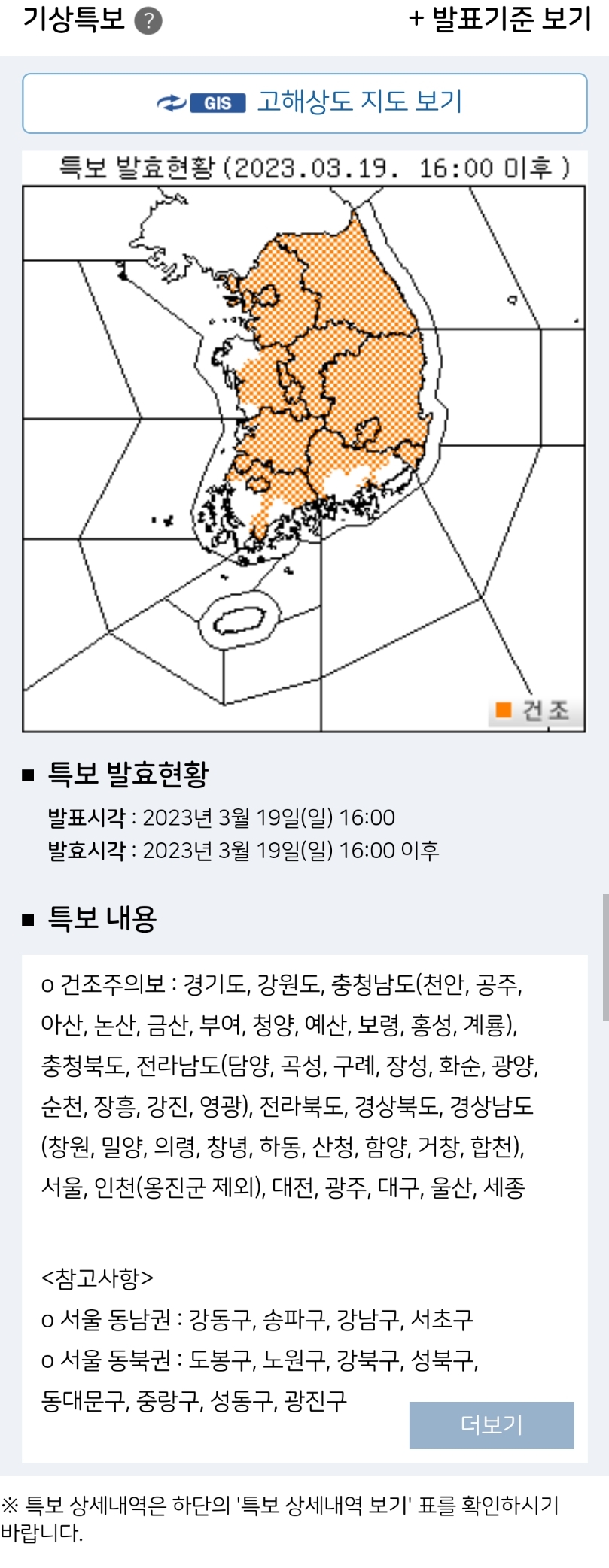 특보현황 - 기상청 날씨누리
