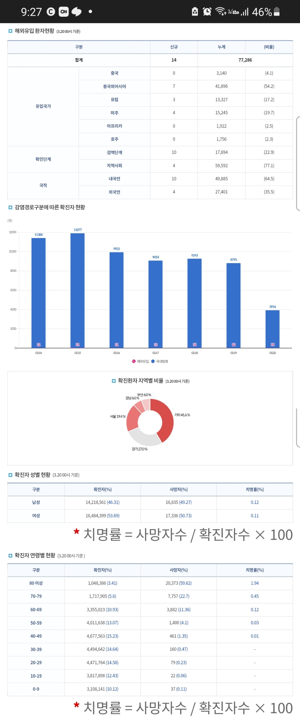 | 코로나19집계(2023.3.18. 0시기준) 확진 +9천, 사망 +4명, 중환자병상가동률 26% (0) | 2023.03.18 |