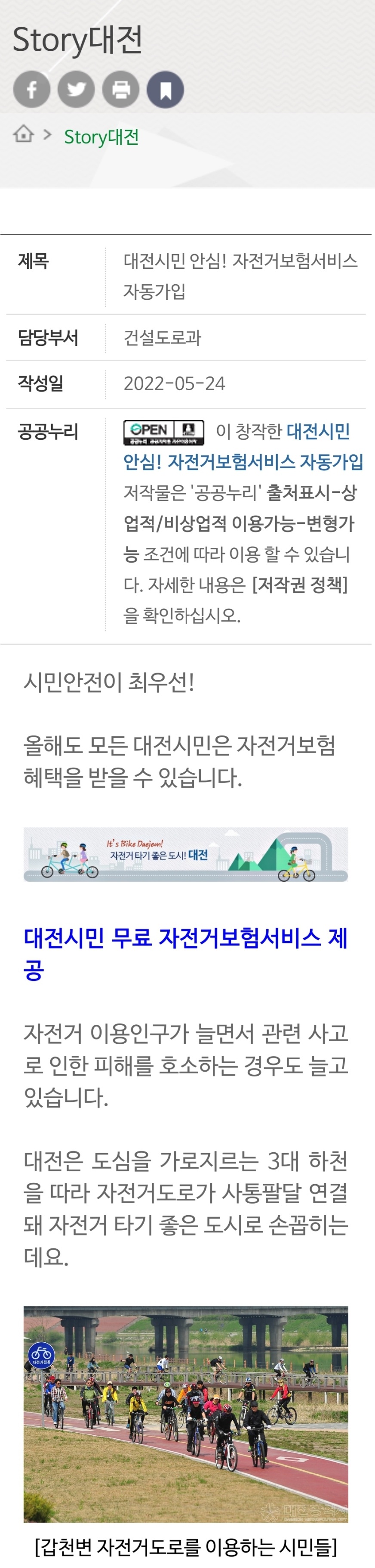 대전시민 안심! 자전거보험서비스 자동가입 | 대전광역시청