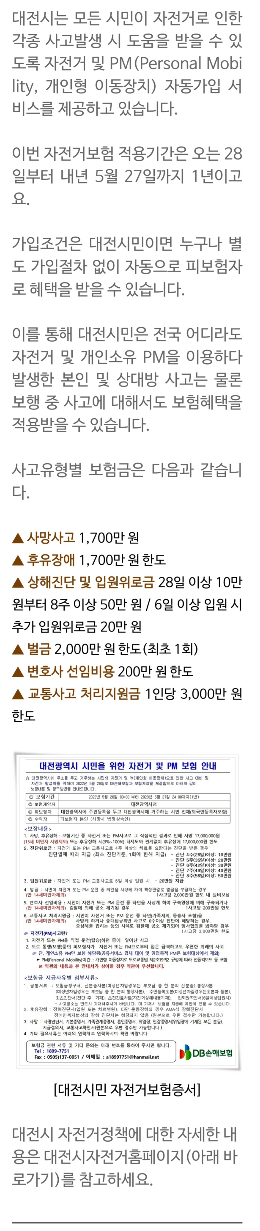 위 대전시것은 대전시민이 조건이며, 사고지역은 전국 어디라도 해당.