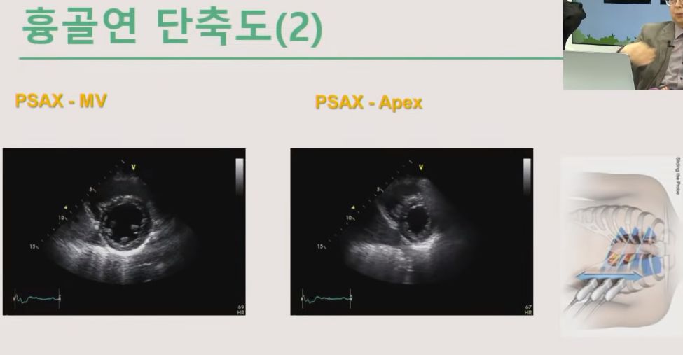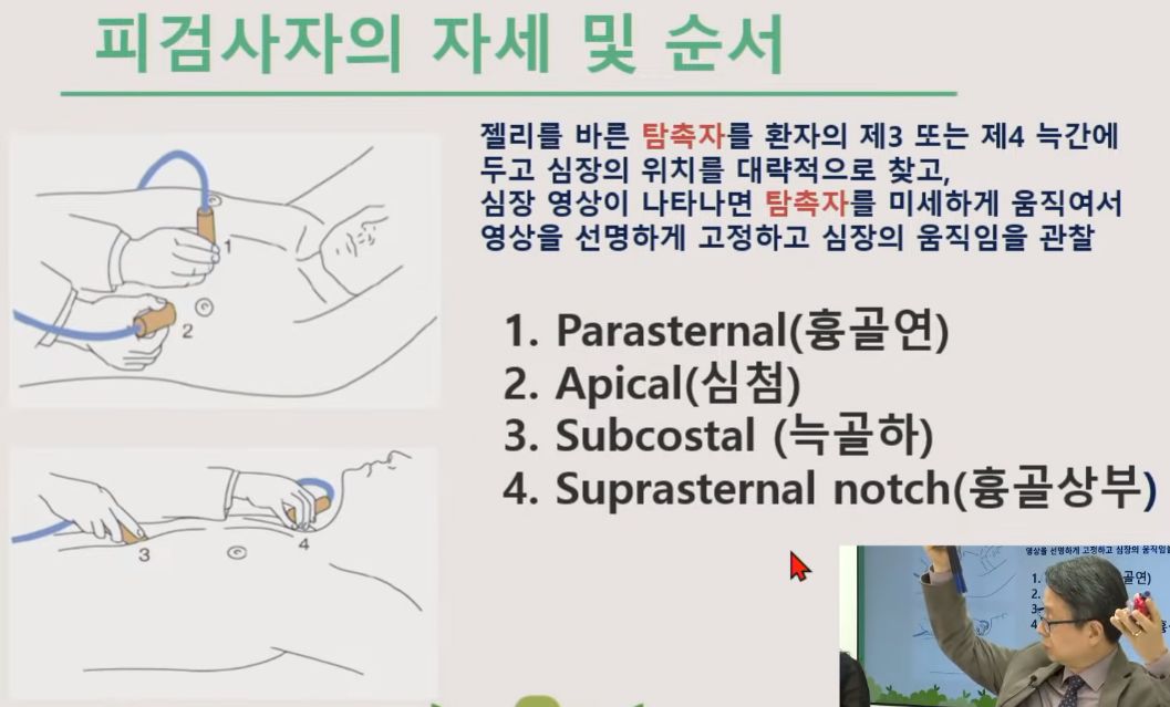 ㅡ 심장이 늑골 뒤에 있으니까, 늑골사이로 초음파를 보내게 된다.