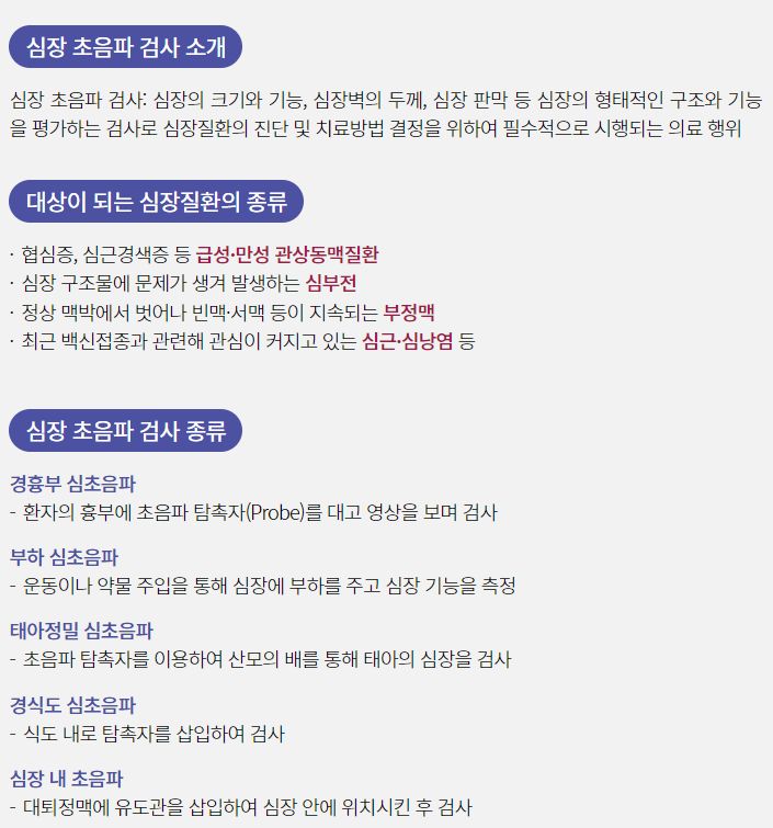 ㅡ 심장초음파를 해야 할 때: 가슴이 아프거나 숨이 차거나 등이지만, 외래진료 후 담당의가 필요하다고 판단했을 때.