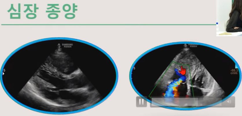 ㅡ 심장초음파검사로 심장크기, (심장벽)두께 측정, 심장기능 평가, 판막질환 진단 및 평가, 선천성 심장질환 진단, 심낭 삼출, 심장종양 진단.