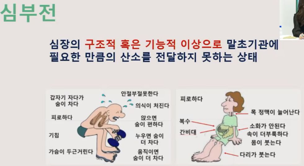 심부전으로 인한 폐울혈때문에 숨이 차는 것이다. 폐동맥압이 높아지면 우심실에 역류가 일어남.