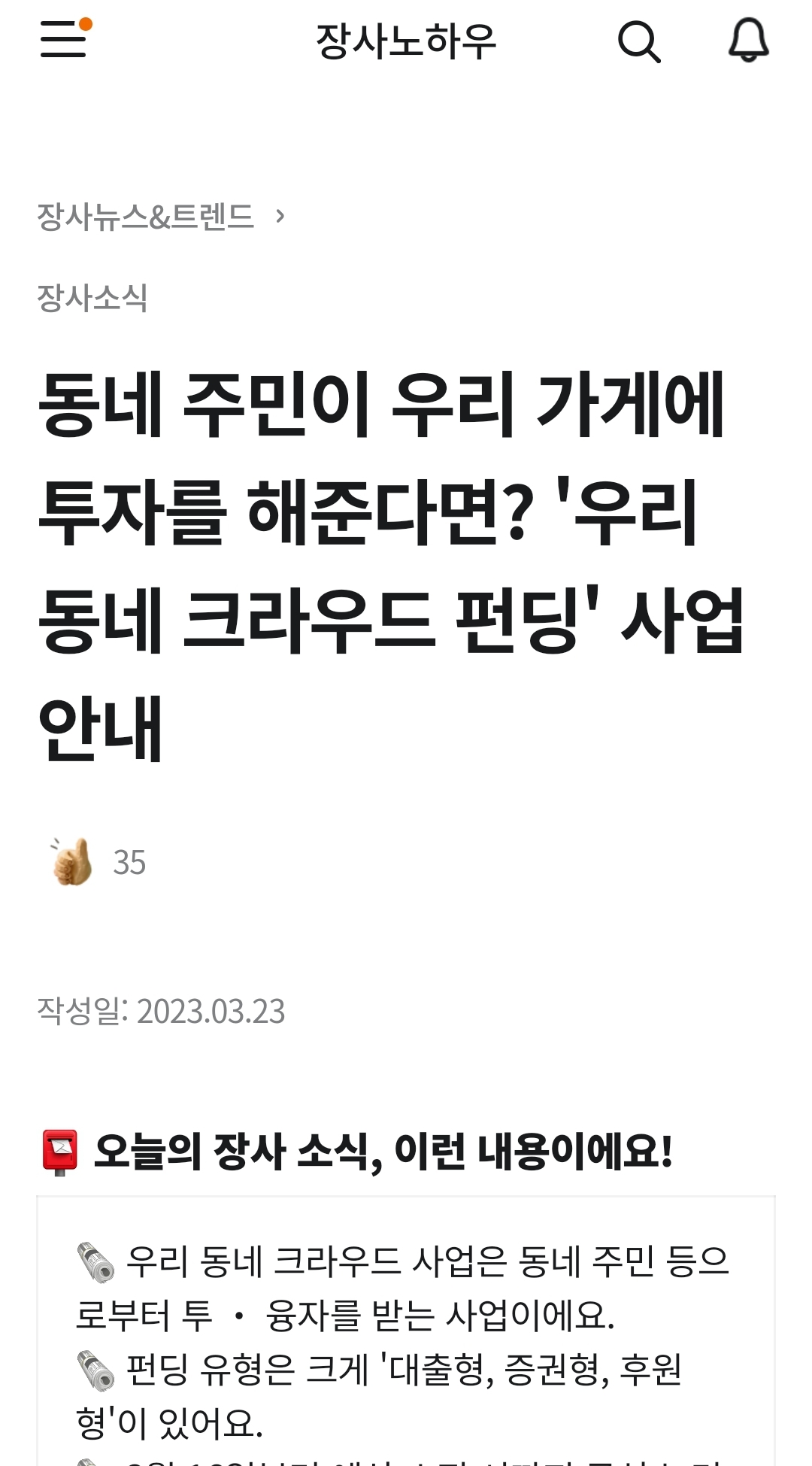 동네 주민이 우리 가게에 투자를 해준다면? '우리 동네 크라우드 펀딩' 사업 안내