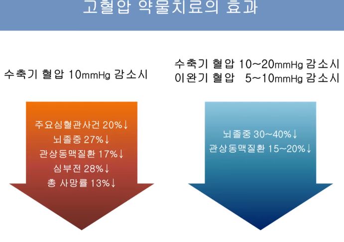 고혈압을 치료해야 하는 이유: 뇌혈관질환, 심혈관질환의 합병증으로 죽는 걸 막기 위해.